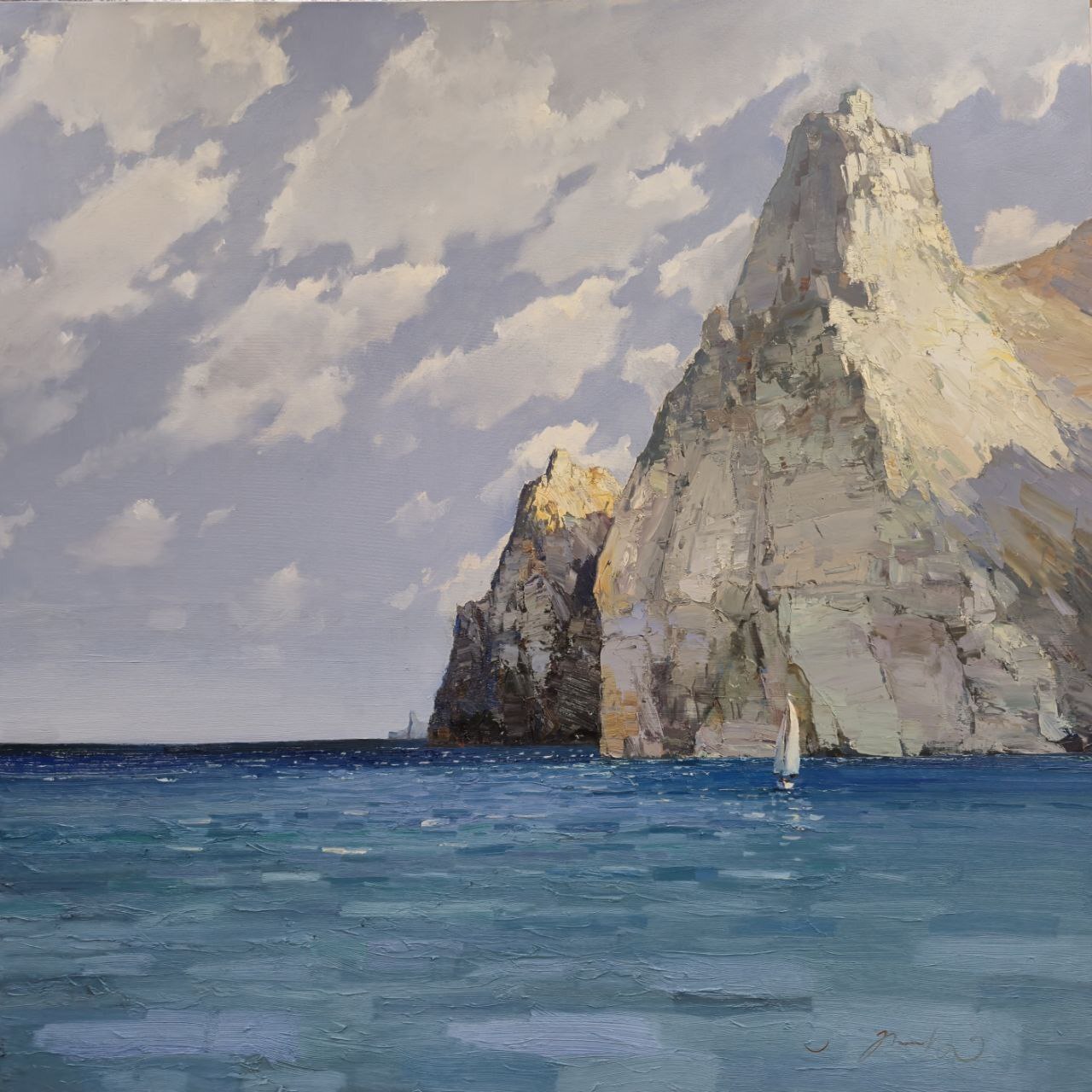 Парусник, 100*100, 2025 г., холст, масло, из серии "Священный Байкал"