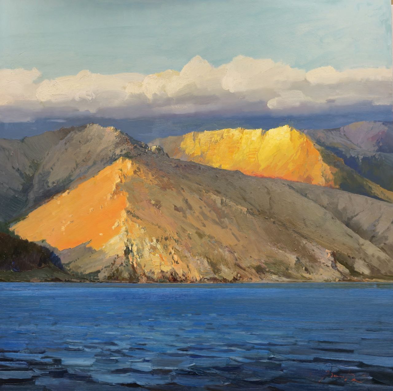 Золотой час, 100*100, 2025 г, холст, масло, из серии "Священный Байкал", международная выставка АртМир 2026, Нижний Новгород