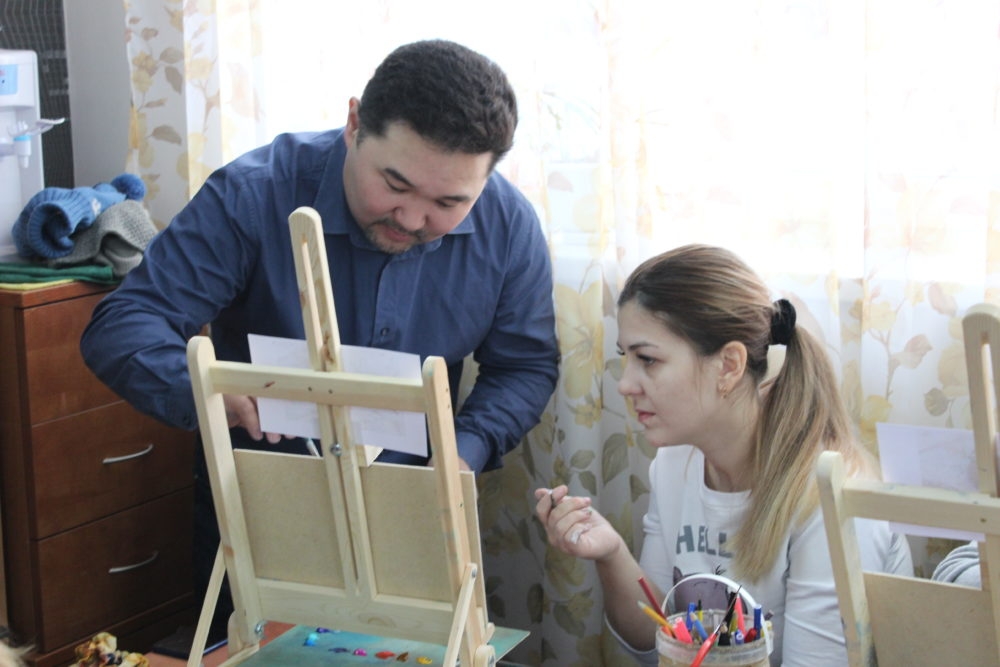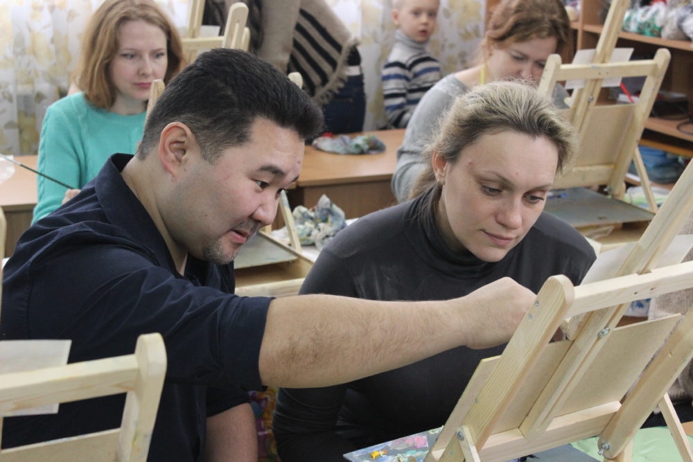 2. Живой процесс. Александр не рисует за вас. Он показывает приёмы, объясняет свойства красок (масло, акрил, акварель), смешивание цветов и… отпускает вас в творческое плавание, всегда будучи рядом для своевременного совета. Его комментарии всегда конструктивны: «Интересный получился эффект! Давай усилим этот контраст?» или «Посмотри, как этот цвет звучит рядом с другим».